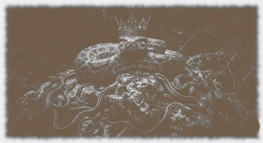Selles äparduses, avaneb meie silme ees ruumi keskel peituv saladus – massiivse graniitrahnu otsas vonklev ussikuningas. Inimesekõrgune, kollakaspruun ja muljetavaldava krooniga ussikuningas. Kes laisalt sabaga vongeldes madalat tümpsuvat heli tekitab.